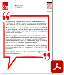 La délégation CGT souhaite rappeler qu’elle est pleinement investie dans l’avenir de ce CSE et qu’elle a proposé son aide et ses compétences depuis le début de l’année 2025, dans un esprit de construction et de responsabilité.